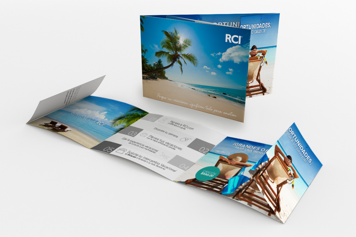 Aplicación de marka en kits de PR y creacion de UI para landin pages de la agencia de viajes y hoteleria RCI.