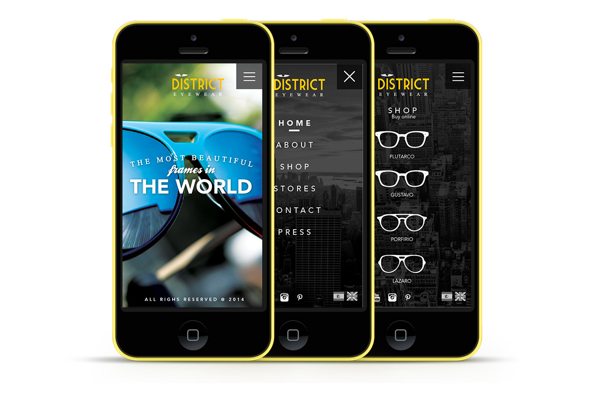 Aplicación de marca en diseño de website, marketng digital y elementos complementarios y combinaciones tipográficas para marca de anteojos y gafas de sol.